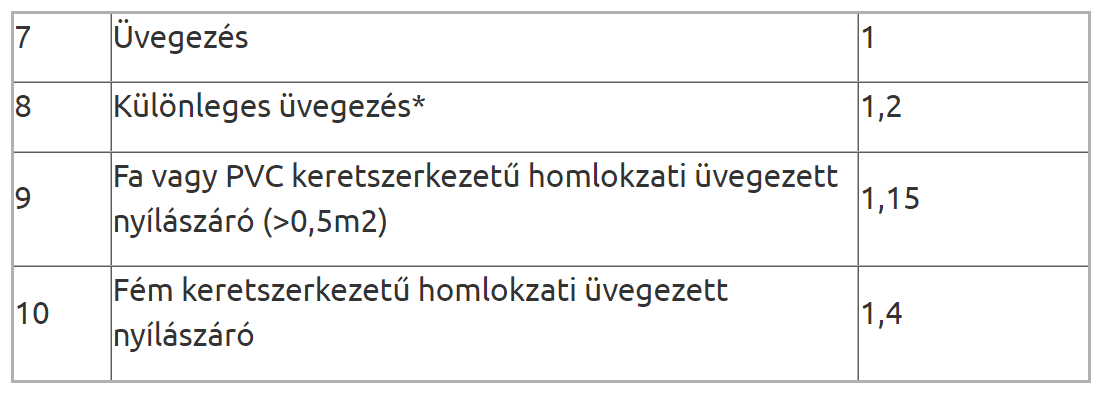 Hőátbocsátási tényező: 7/2006. (V. 24.) TNM rendelet , a 20/2014 (III.7.) BM rendelet szigorítása szerint